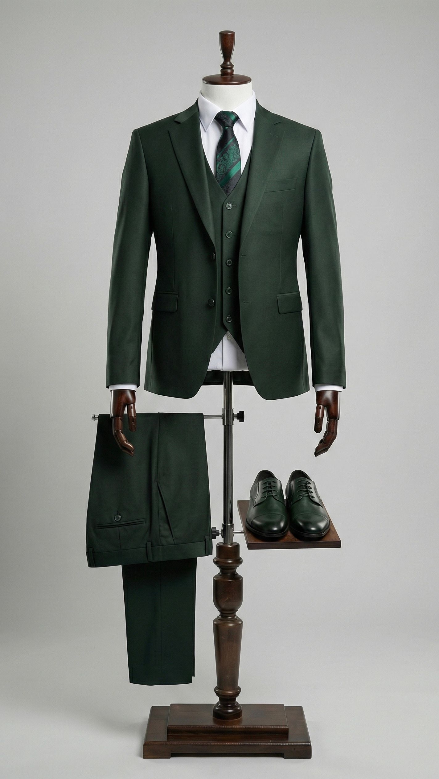 Цвет, который говорит за вас: Глубокий зеленый — это новый черный. Он выглядит дорого, свежо и сочетается с большинством цветов рубашек (от классического белого и голубого до смелого розового или черного).
