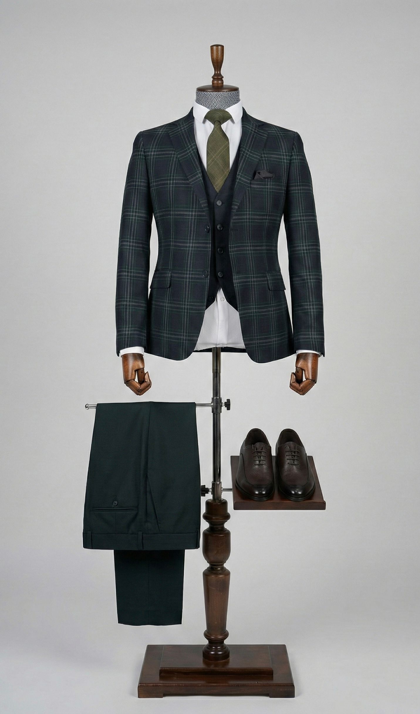 Этот костюм-тройка создан для мужчины, который уверен в себе и ценит индивидуальность. Выразительная клетка на пиджаке добавляет образу динамики и итальянского шарма, а строгий жилет и брюки возвращают к классическим канонам элегантности.